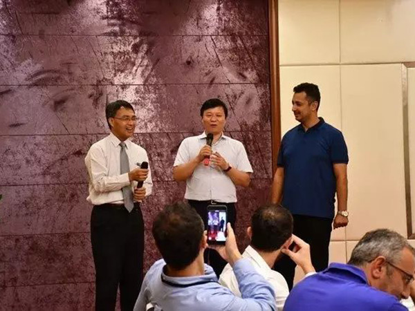 トルコ熱処理協会一行30人は会社に来臨し、訪問見学します。26日晩、会社は新詞ホテルに遠くからのお客様を歓迎するために食会を行いました。会社グループ理事長朱文明は挨拶しました。今回の見学訪問によって、豊東はトルコ熱処理業界各企業との交流橋を作ります。トルコ熱処理協会会長は会社に精緻で美しい贈り物を贈呈する。