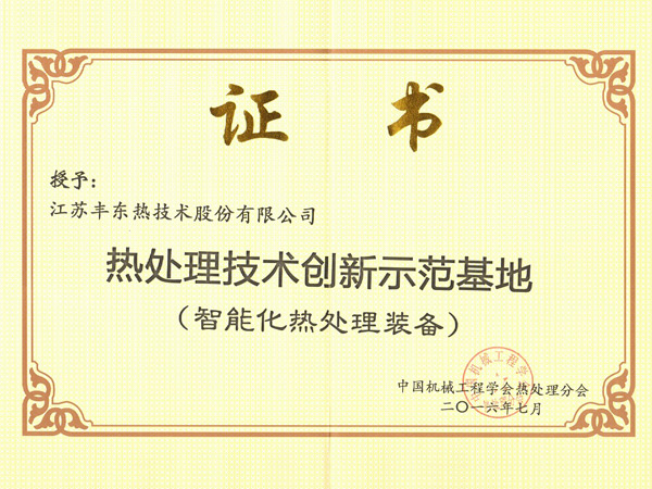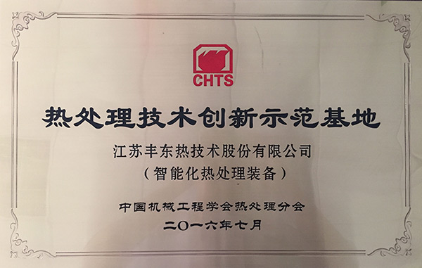2016年7月、中国機械工程学会熱処理分会から江蘇豊東熱技術株式有限会社は「熱処理技術創新模範基地―知能化熱処理設備」と認定される。